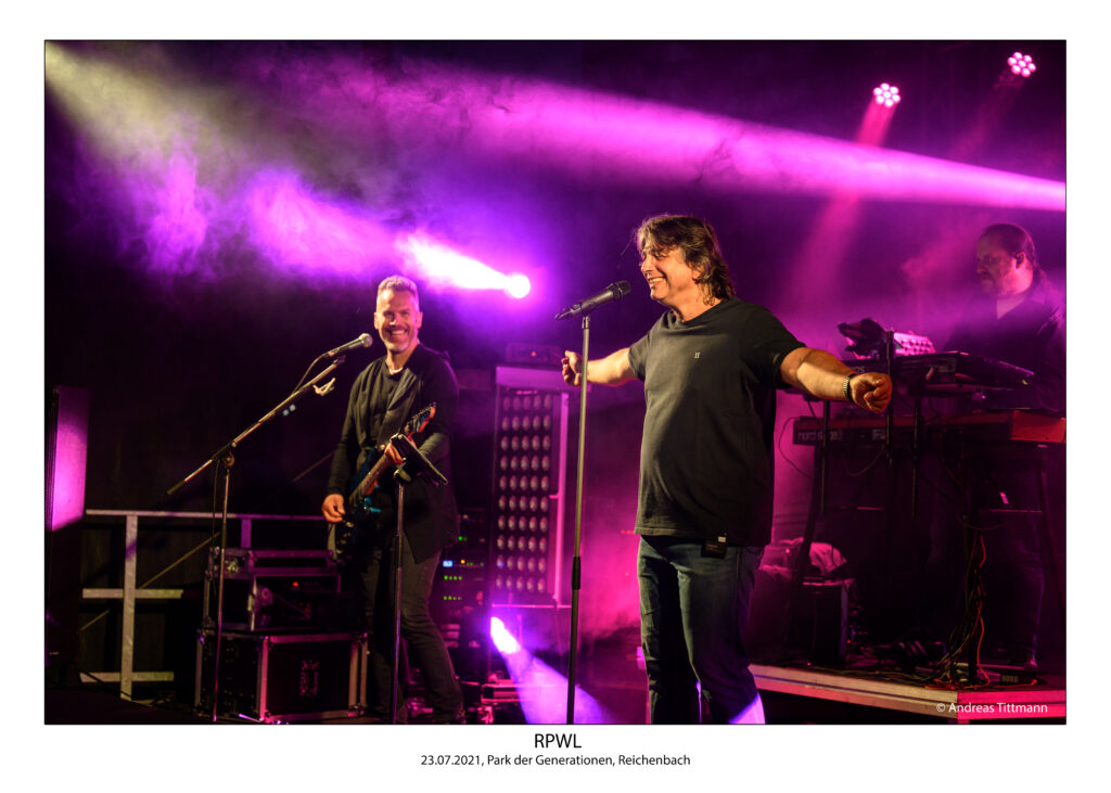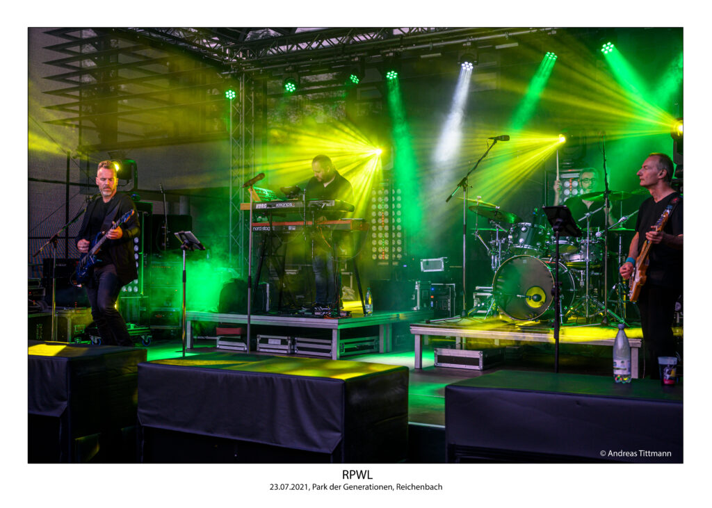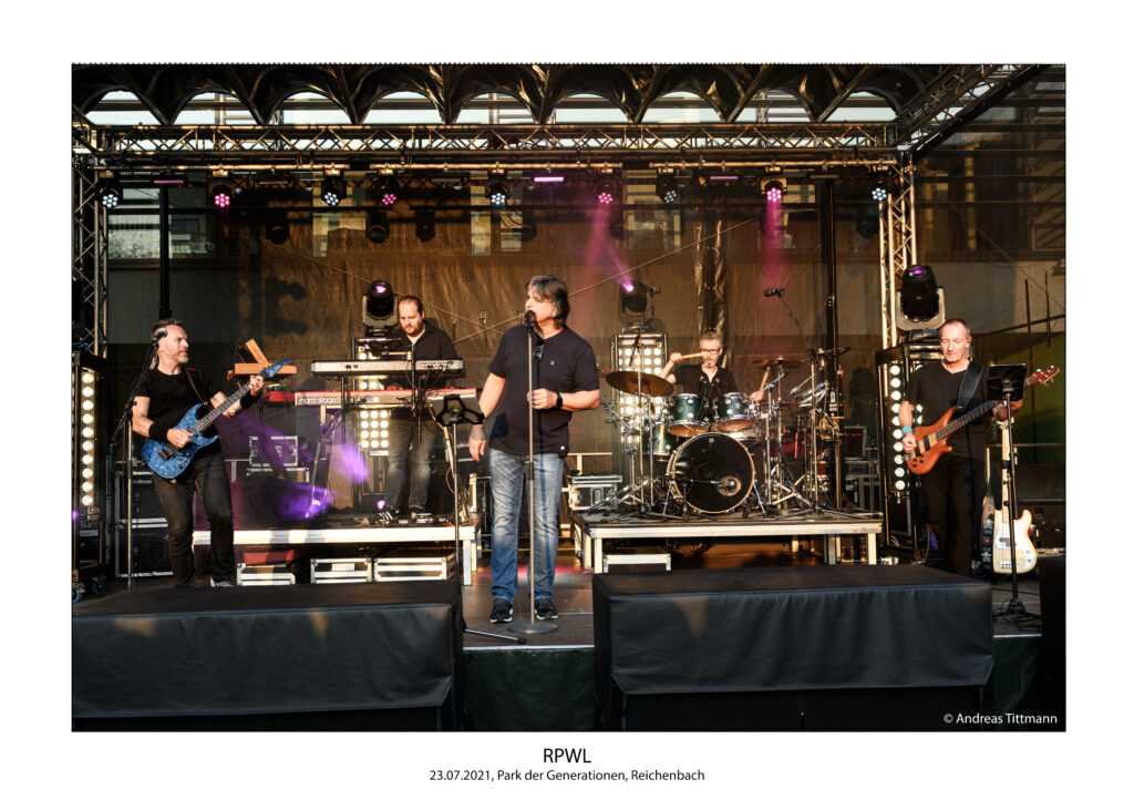 Nach vielen Wochen, ja Monaten fand endlich mal wieder ein Konzert der größeren Art statt … und viele waren gekommen! Das war bei kleineren Veranstaltungen, die es jetzt ab und an schon gab nicht immer der Fall, war da noch eine gewisse Zurückhaltung zu spüren … passte dieses Mal einfach alles zusammen. Die Band, RPWL, hierzulande keine Unbekannten und die zur Spitze der Artrockbands gehören, das Wetter und die Location in Reichenbach. Das ganze fand Open Air im „Park der Generationen“ statt, wer etwas früher da war, konnte sich von dem bestens in Schuss gehaltenen ehemaligen Landesgartenschaugelände überzeugen. Das schafft nicht jede Kommune, solch ein Gelände zu erhalten … Reichenbach schon!